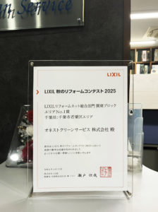 LIXIL 秋のリフォームコンテスト2025 で関東ブロック 千葉市若葉区エリアNo.1賞をいただきました。